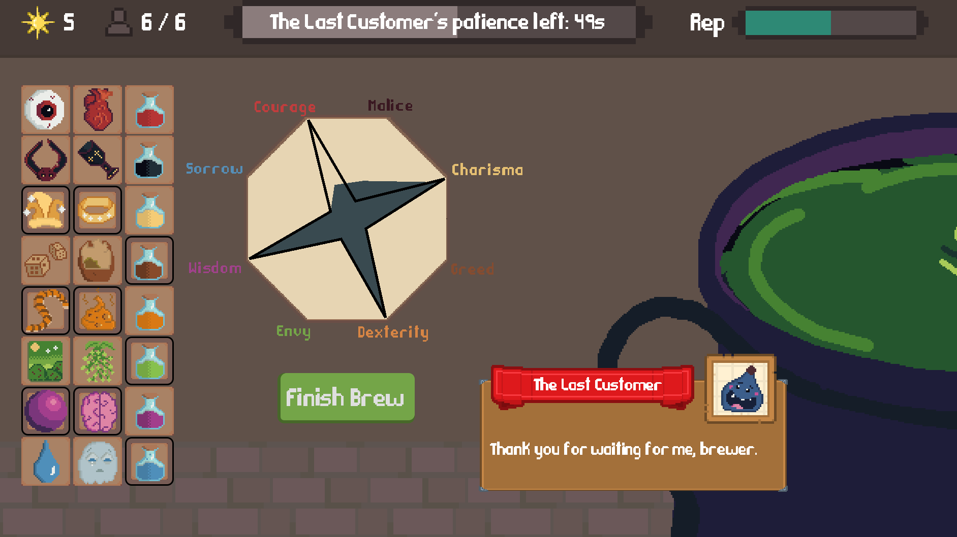 This game was made for the Godot Wild Jam #92 Game Jam with the theme of "Brewing"